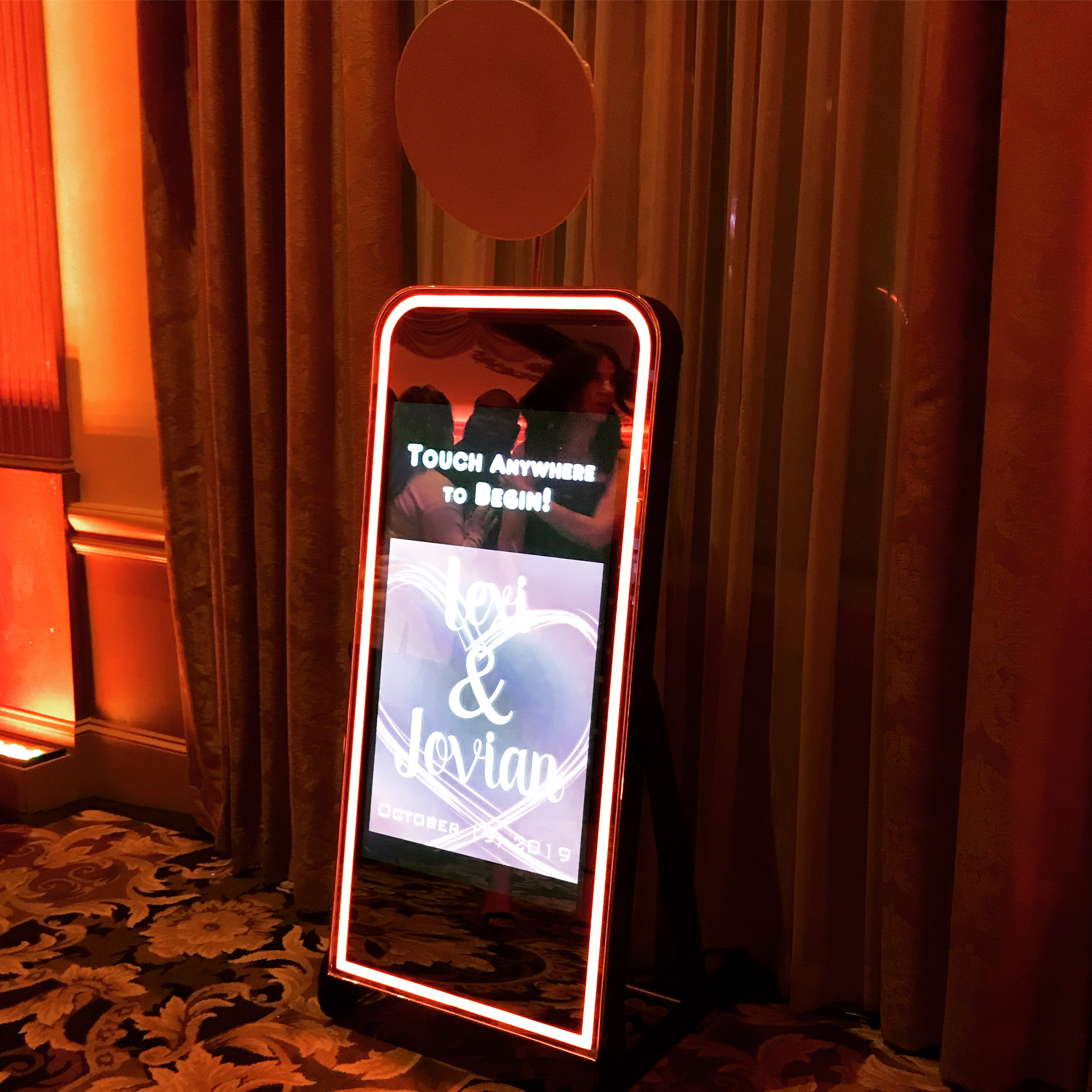 Our specialties include interactive fun, luxurious design, personalized experiences, and instant photo-sharing. The Mirror Booth offers a sleek, full-length mirror that invites guests to engage with a touch screen interface, creating a unique photo booth experience that’s both interactive and visually striking.